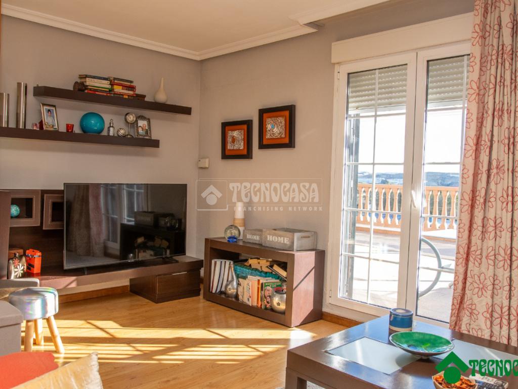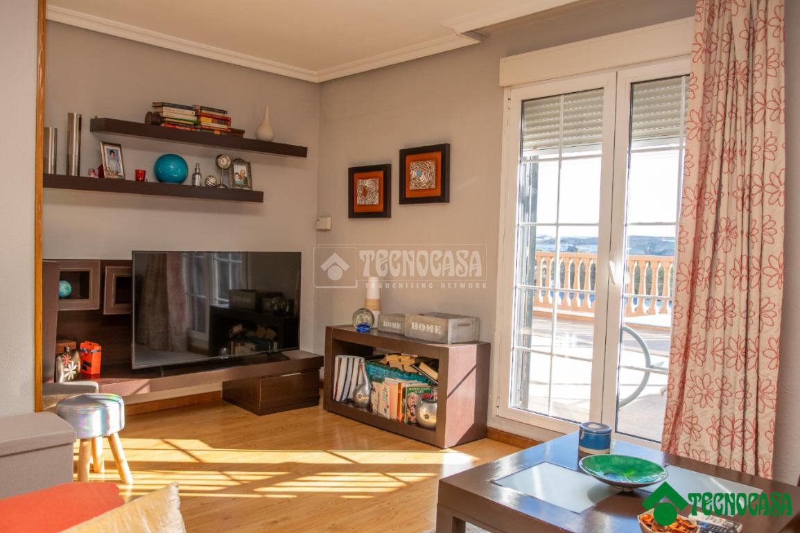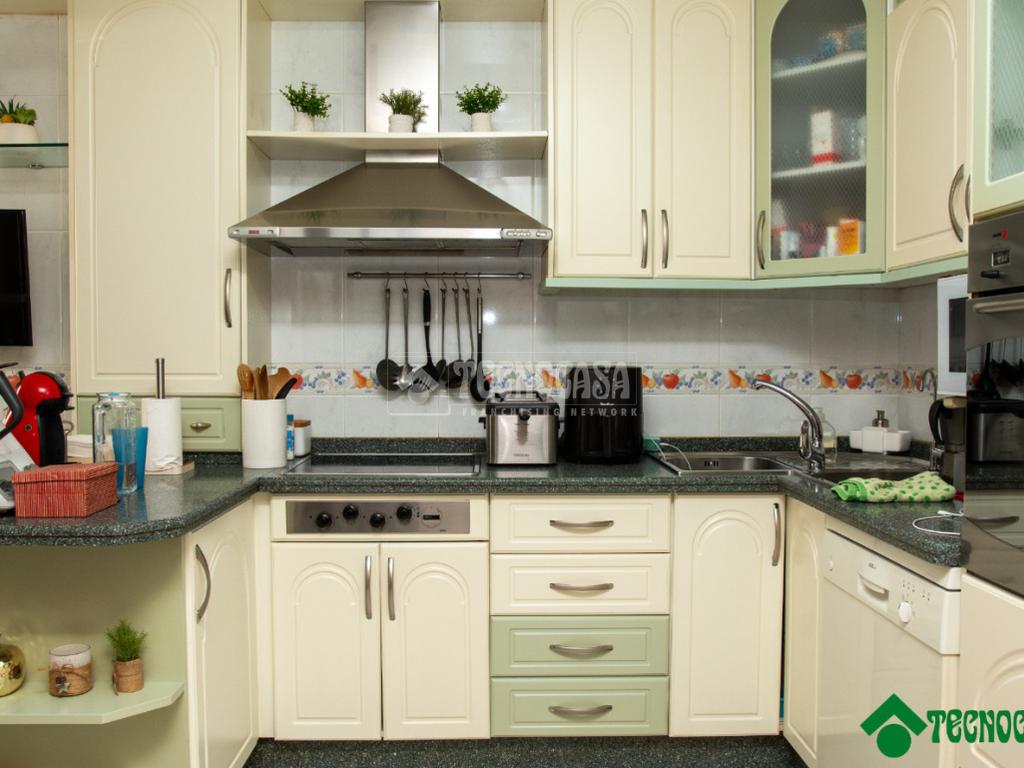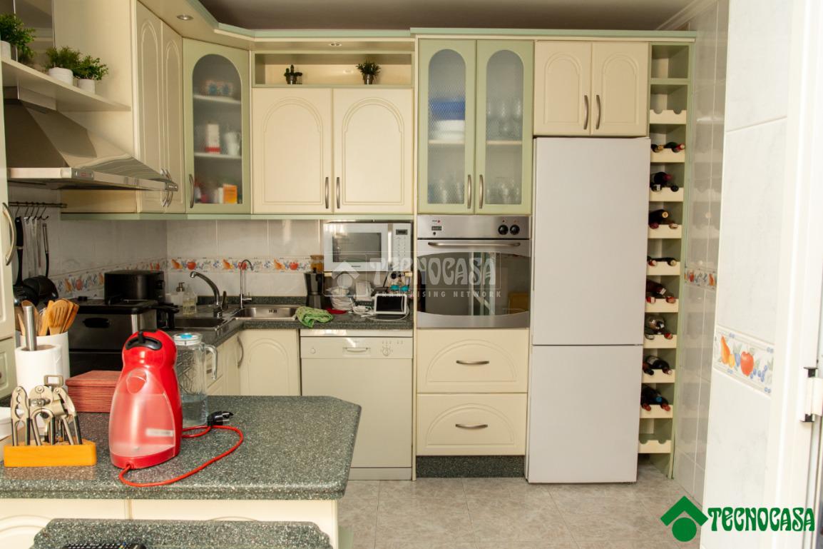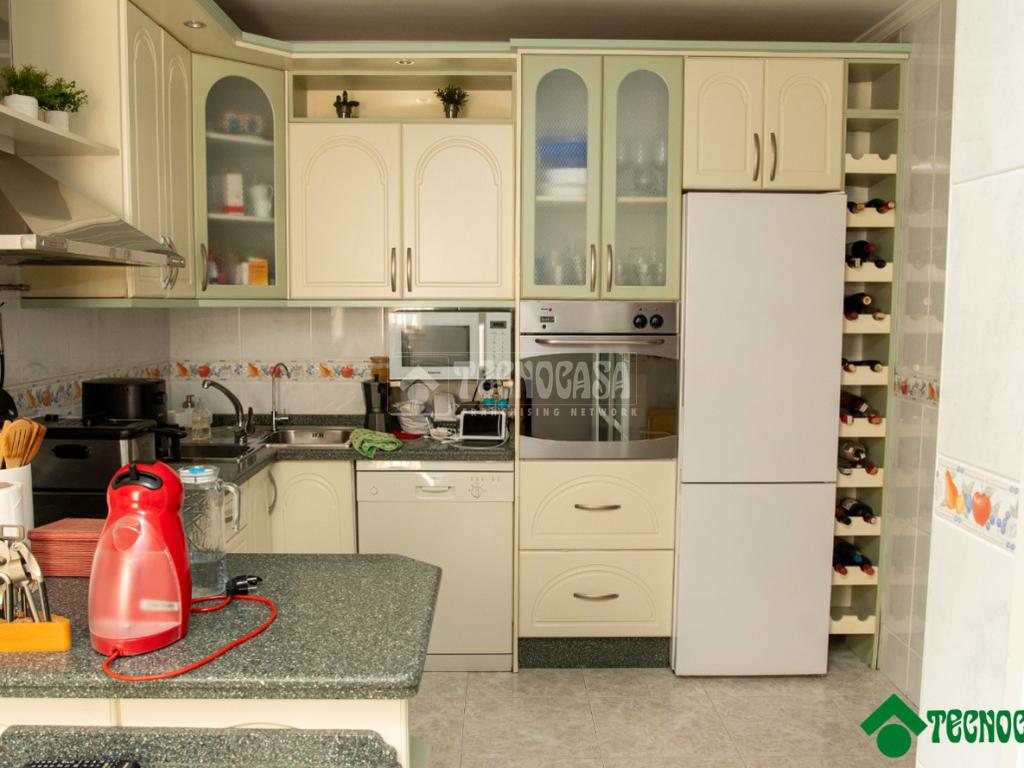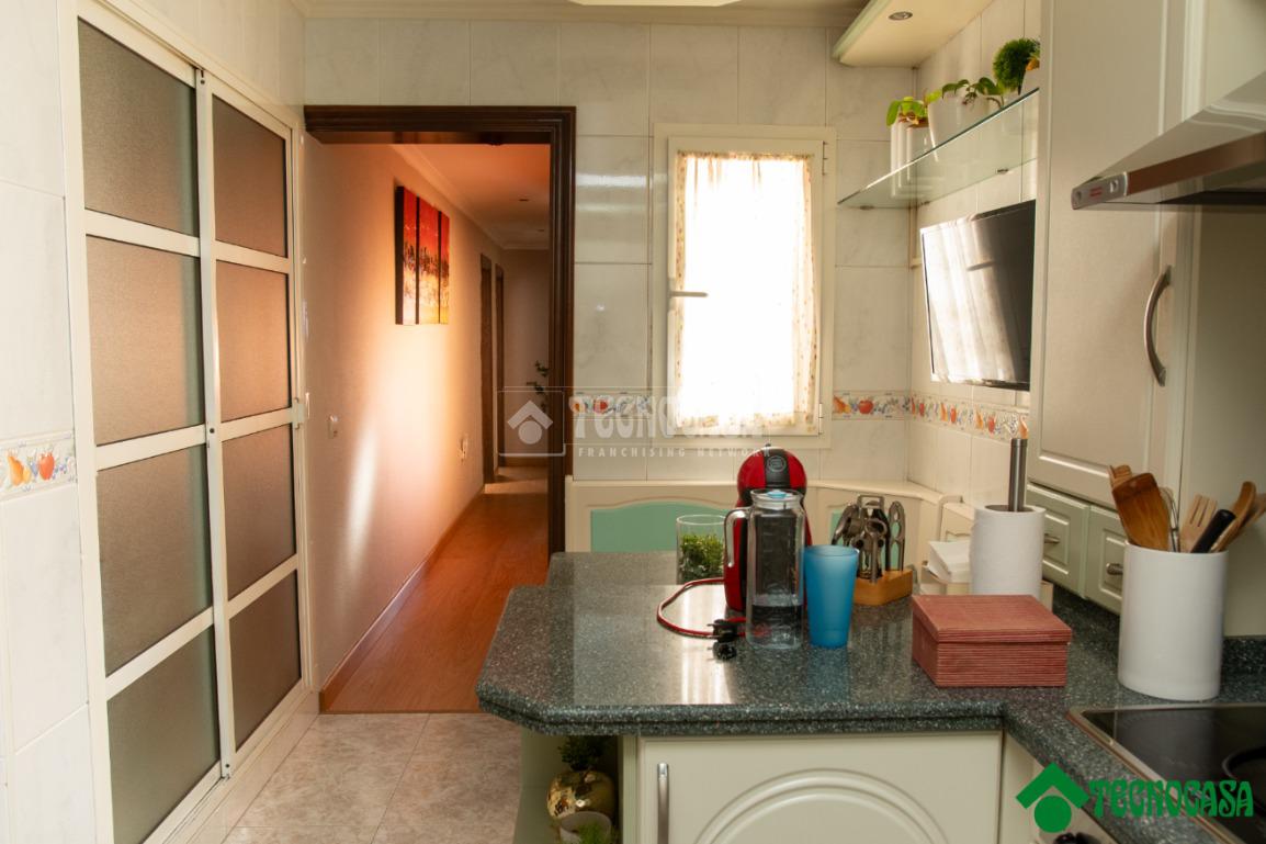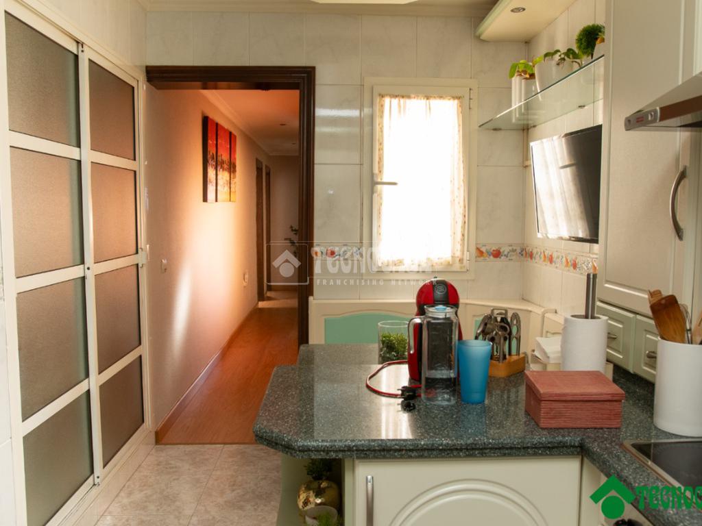 El salón, amplio y luminoso, ofrece un espacio confortable para el uso cotidiano y reuniones familiares. La cocina, independiente y bien distribuida, proporciona un entorno práctico y funcional, con espacio suficiente para el almacenamiento y el trabajo diario.